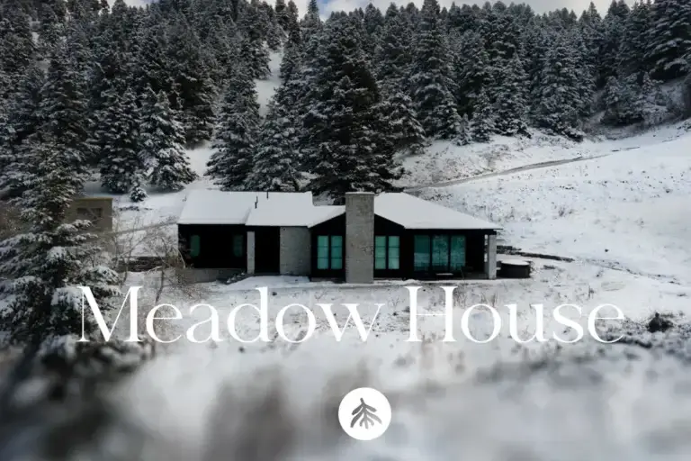 Meadow House Spanning 3,500 sq. ft., the Meadow House features two elegant king suites and a spacious bunk room with two queen and two double bunks—ideal for families or groups. The rustic-modern interiors are filled with natural light and framed by sweeping views of the surrounding mountains and meadows. Outside, a private hot tub, fire pit, and open fields create a peaceful setting for guests to unwind, explore, and reconnect.