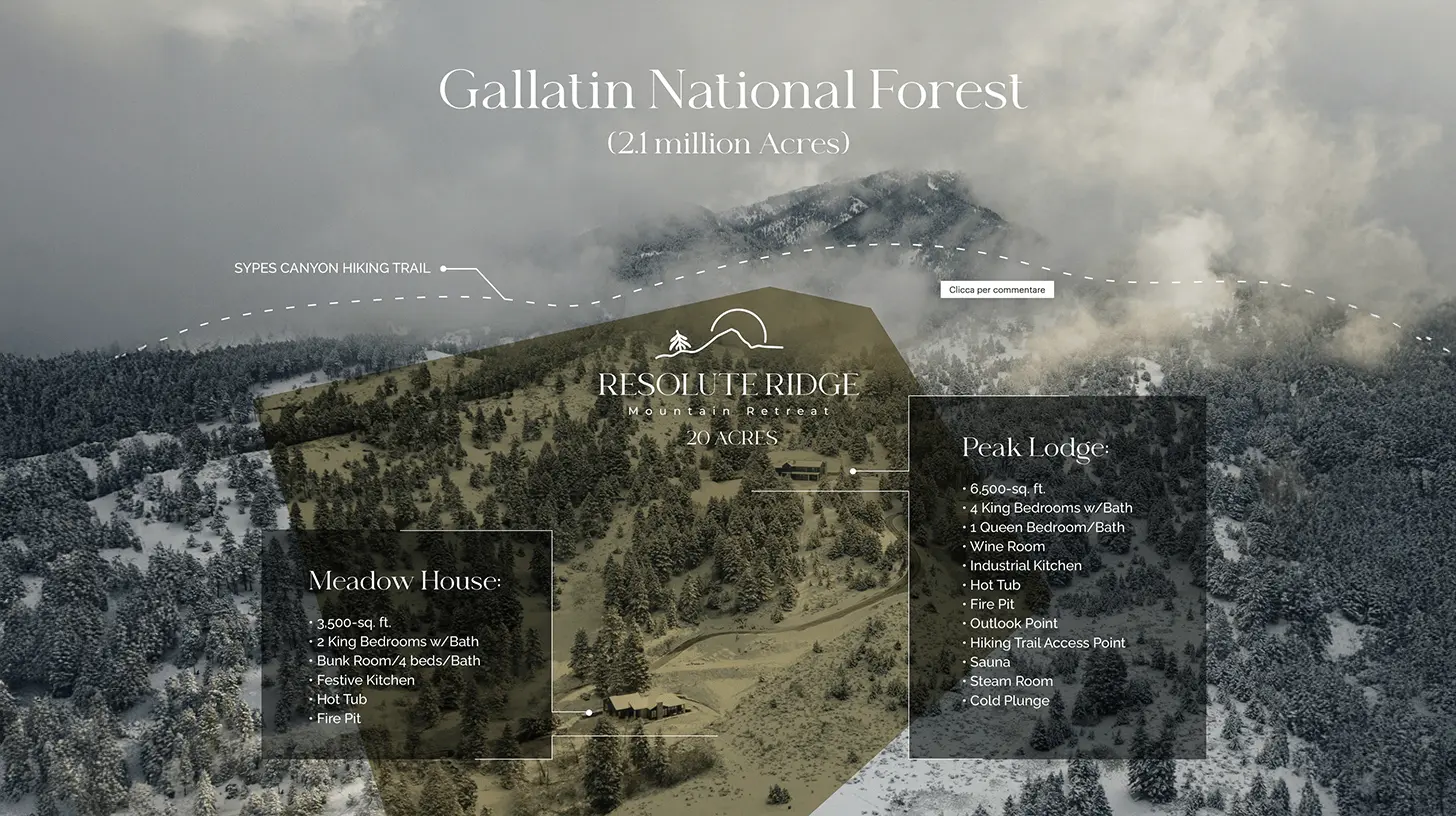 At Resolute Ridge Mountain Retreat, luxury meets nature in every season. Set on 20 private acres within the breathtaking 2-million-acre expanse of the Gallatin National Forest, the property features two distinct accommodations—Peak Lodge and Meadow House—ideal for families, groups, or corporate retreats of up to 20 guests seeking space, connection, and unparalleled tranquility.
