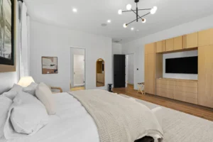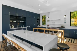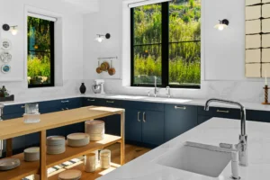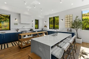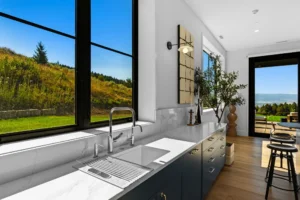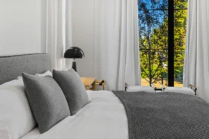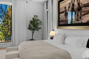 Meadow House spans 3,500 square feet and features two beautifully appointed bedrooms and a cozy bunkhouse. The interior blends modern design with rustic charm, highlighted by large windows that flood the space with natural light and offer sweeping views of the surrounding meadows and mountains. Guests can relax in the outdoor hot tub, fully immersed in the serene ambiance and the calming sounds of nature.