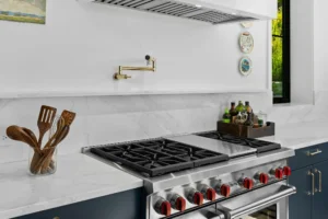 An outdoor grill ready for cooking meals while taking in the mountain air.